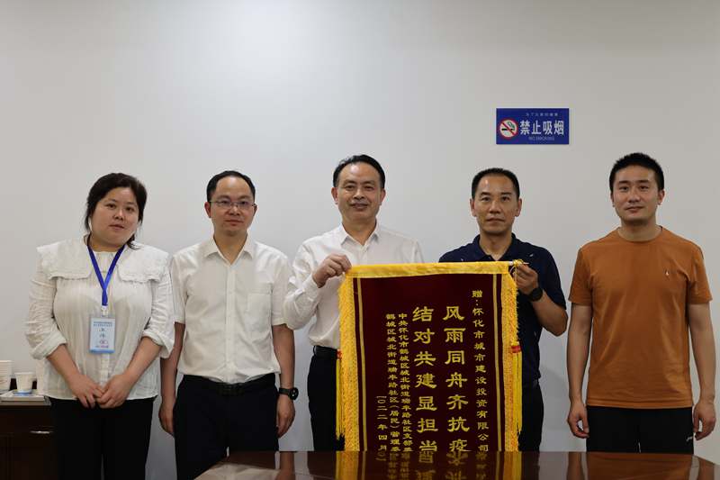 4月28日,懷化市鶴城區(qū)城北街道瑞豐路社區(qū)黨支部書記、居委會主任趙東升攜社區(qū)工作人員來到懷化市城市建設(shè)投資有限公司,送上了“風(fēng)雨同舟齊抗疫、結(jié)對共建顯擔(dān)當(dāng)”錦旗,以此感謝市城建投公司廣大志愿者自2020年疫情以來對社區(qū)提供的志愿幫扶,表達了對市城建投黨員干部在疫情防控期間表現(xiàn)出優(yōu)良工作作風(fēng)的敬佩與贊賞。