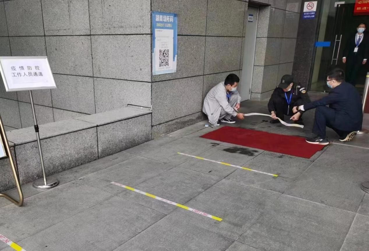 疫情防控期間,市領(lǐng)導(dǎo)多次召開會(huì)議安排部署防疫工作,各單位紛紛前來(lái)指揮部辦理車輛通行證,工作人員、志愿者工作證,智慧大廈進(jìn)出人員多、車輛出入頻繁。為此,市城建投公司對(duì)人員管控、車輛管控、會(huì)務(wù)服務(wù)、保潔消殺、電力設(shè)備保障等每個(gè)環(huán)節(jié)、每處細(xì)節(jié)都精心組織、合理安排。為了確保智慧大廈指揮中心的絕對(duì)安全,在細(xì)化大樓進(jìn)出管理流程,嚴(yán)格設(shè)置進(jìn)出口的同時(shí),安排人員值守,進(jìn)入大樓疫情防控工作人員一律戴口罩、測(cè)溫、掃碼、實(shí)名登記,嚴(yán)格限制未持有智慧大廈工作證的人員進(jìn)出并做好解釋和服務(wù)工作,落實(shí)疫情防控精、準(zhǔn)、嚴(yán)的檢查要求。加強(qiáng)車輛管控,地下停車場(chǎng)實(shí)行封閉管理,通行車輛統(tǒng)一“北進(jìn)南出”,管控人員做好車輛引導(dǎo),確保有序停放、交通組織通暢。安排電工做好電力設(shè)備維護(hù),除三臺(tái)電梯用于辦公外,其他電梯關(guān)閉停用。實(shí)行24小時(shí)保潔制,對(duì)大樓內(nèi)外環(huán)境進(jìn)行多頻次消殺……