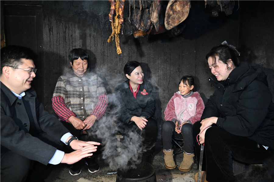 (2月19日,農(nóng)歷正月初三。市委副書記、市長韋朝暉來到鶴城區(qū)山村走訪慰問群眾,調研鄉(xiāng)村振興、文旅產(chǎn)業(yè)發(fā)展、安全生產(chǎn)等工作。圖為韋朝暉在村民彭安妹家中走訪慰問。懷化日報全媒體記者 吳濤 攝)