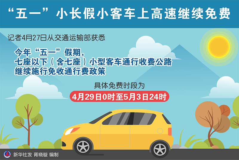 “五一”假期臨近。記者4月27日從交通運(yùn)輸部獲悉,2023年“五一”假期,七座以下(含七座)小型客車通行收費(fèi)公路繼續(xù)施行免收通行費(fèi)政策,具體免費(fèi)時段為4月29日0時至5月3日24時。