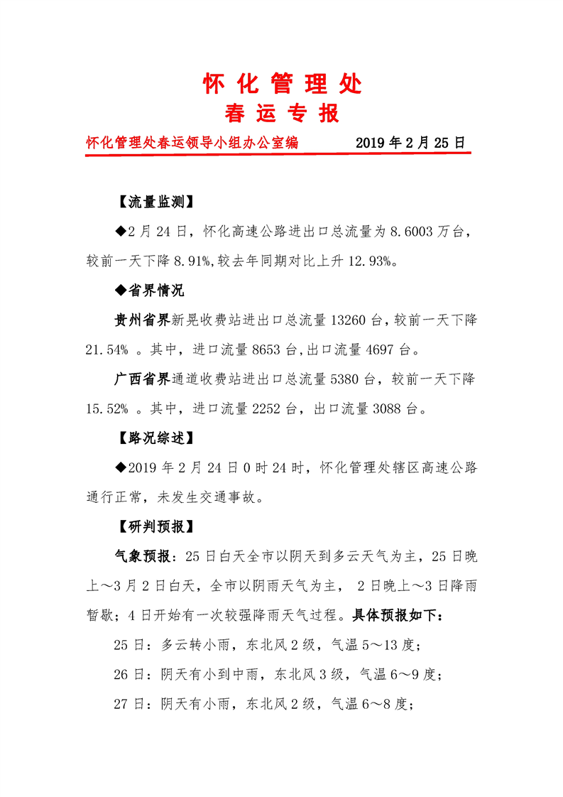 2019年懷化市高速公路春運(yùn)專報(bào)(第34期)