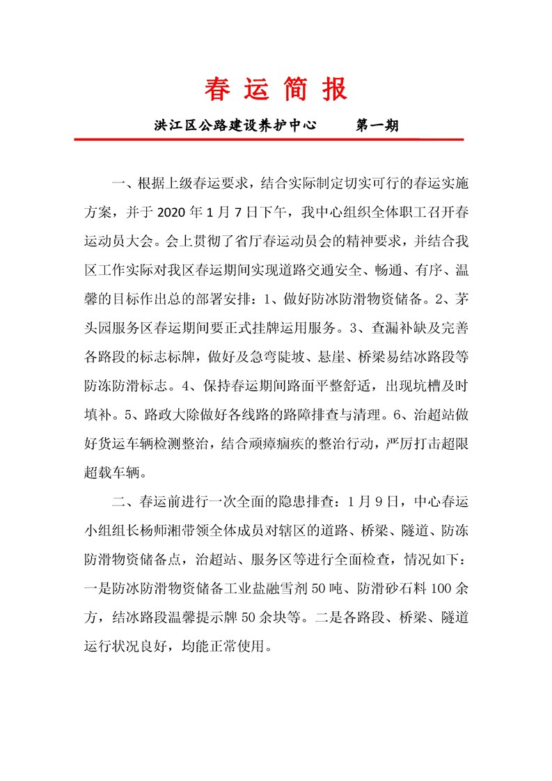 洪江區(qū)公路建養(yǎng)中心春運(yùn)簡(jiǎn)報(bào)第一期
