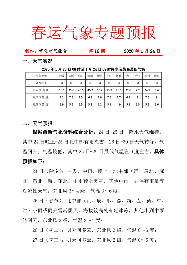 春運(yùn)氣象專題預(yù)報(bào) 第16期