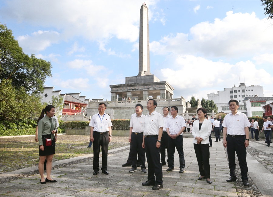 來(lái)到寨前鎮(zhèn),許達(dá)哲一行到紅六軍團(tuán)西征誓師地,瞻仰了誓師紀(jì)念廣場(chǎng)等。許達(dá)哲指出,紅六軍團(tuán)突圍西征,為中央紅軍長(zhǎng)征起到了偵察、探路的先遣隊(duì)作用。我們要充分發(fā)揚(yáng)這種探索開拓精神,甘當(dāng)偉大事業(yè)的“馬前卒”、爭(zhēng)做開拓進(jìn)取的“急先鋒”。