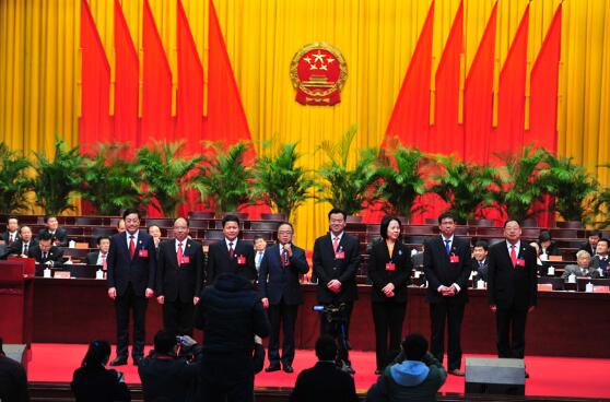 當(dāng)選的懷化市人大常委會正副主任與代表見面