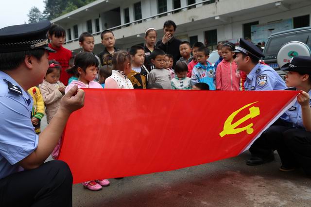 “六一”國(guó)際兒童節(jié)即將來(lái)臨,5月27日,湖南省辰溪縣公安局組織青年民警,帶著文具、書包、水果等禮物,來(lái)到該縣十分偏僻的田灣鎮(zhèn)選場(chǎng)村,和村里的留守兒童們提前過(guò)“六一”節(jié),讓留守兒童們感受了節(jié)日的氛圍和祖國(guó)大家庭的溫暖?;顒?dòng)中,民警還為同學(xué)們同學(xué)們講解了國(guó)旗、黨旗的含義,號(hào)召同學(xué)們從小熱愛祖國(guó)、熱愛黨,立志做一個(gè)對(duì)社會(huì)有用人,并一起升起了國(guó)旗。