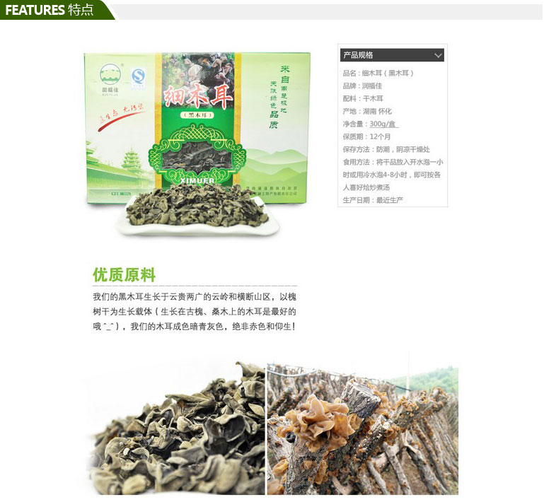 潤(rùn)福佳 細(xì)木耳 肉質(zhì)肥厚 野生菌黑木耳 云耳 袋裝300g