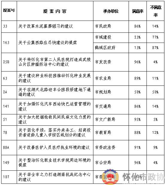 2014年12月17日,市政協(xié)四屆十次常委會(huì)會(huì)議對(duì)市政協(xié)四屆二次會(huì)議12件提案辦理工作進(jìn)行了評(píng)議和測(cè)評(píng),測(cè)評(píng)結(jié)果如下: