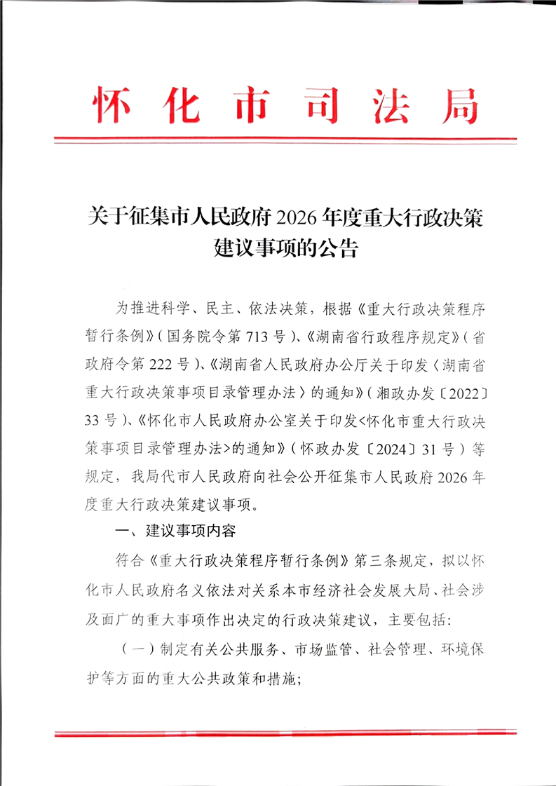 關(guān)于征集市人民政府2026年度重大行政決策建議事項(xiàng)的公告