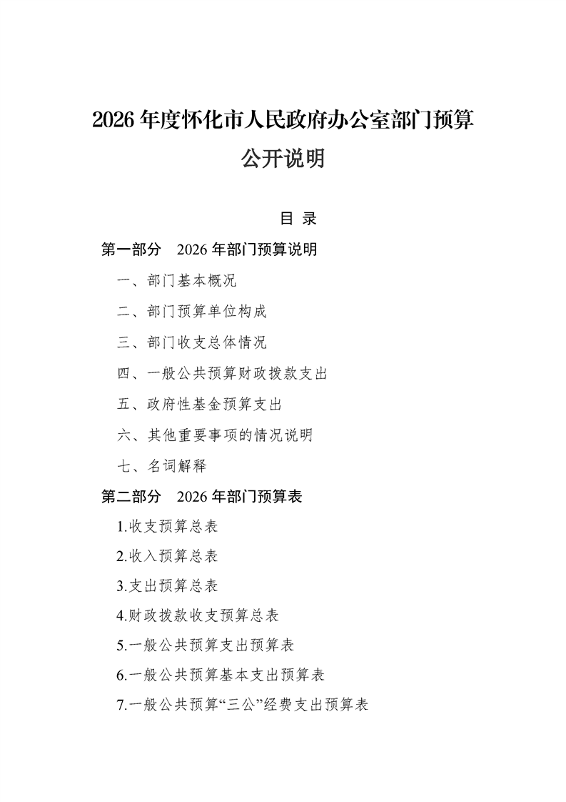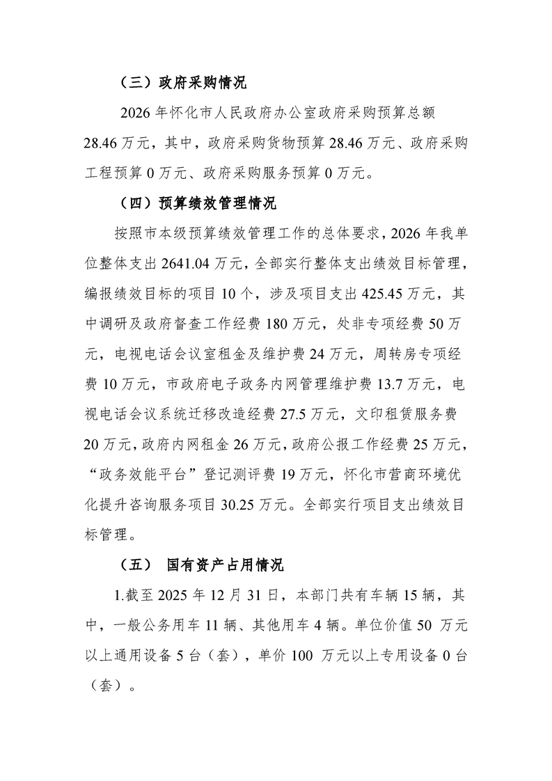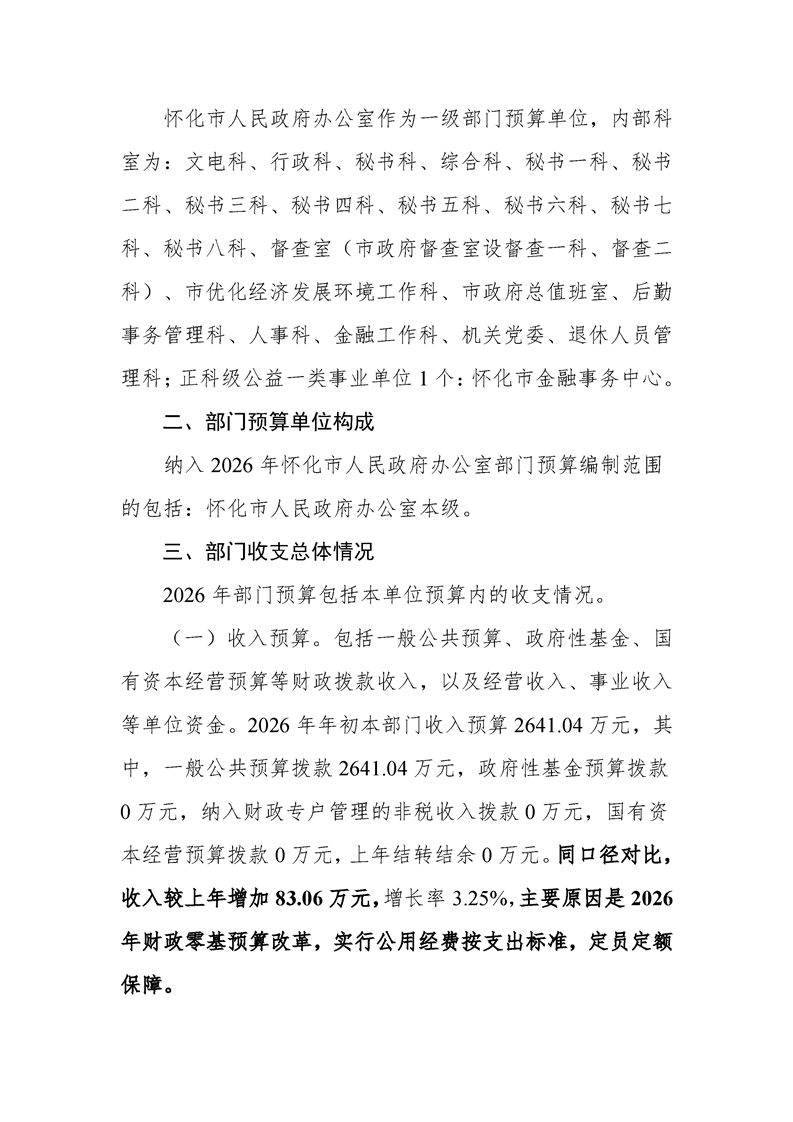 2026年度懷化市人民政府辦公室部門預算公開說明