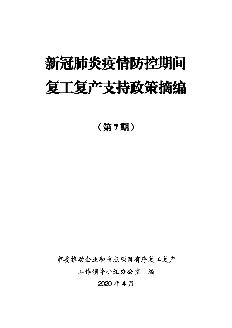 新冠肺炎疫情防控期間復(fù)工復(fù)產(chǎn)支持政策摘編(第7期)