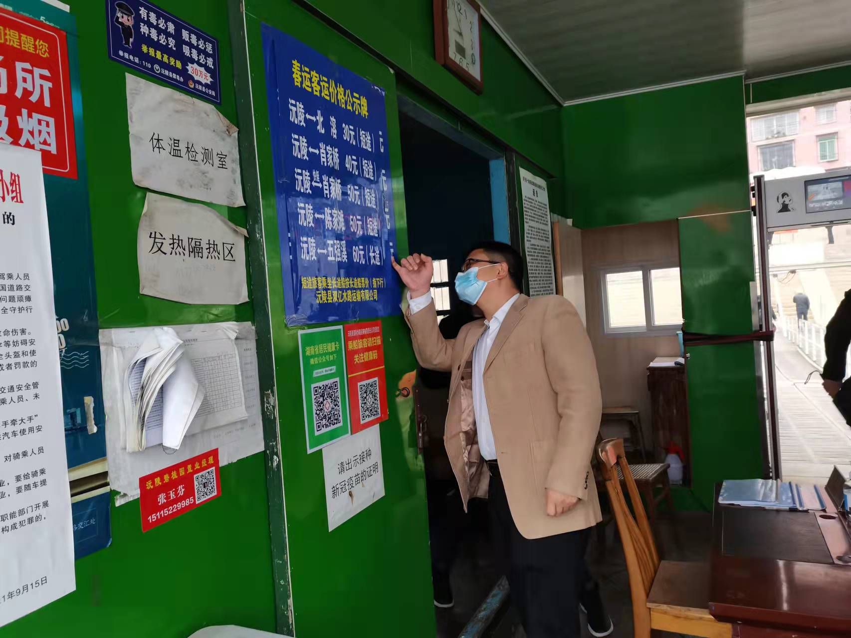 1月20日上午,沅陵縣委常委、副縣長唐德勝帶隊在車站、碼頭開展春運(yùn)安全生產(chǎn)及疫情防控工作檢查。