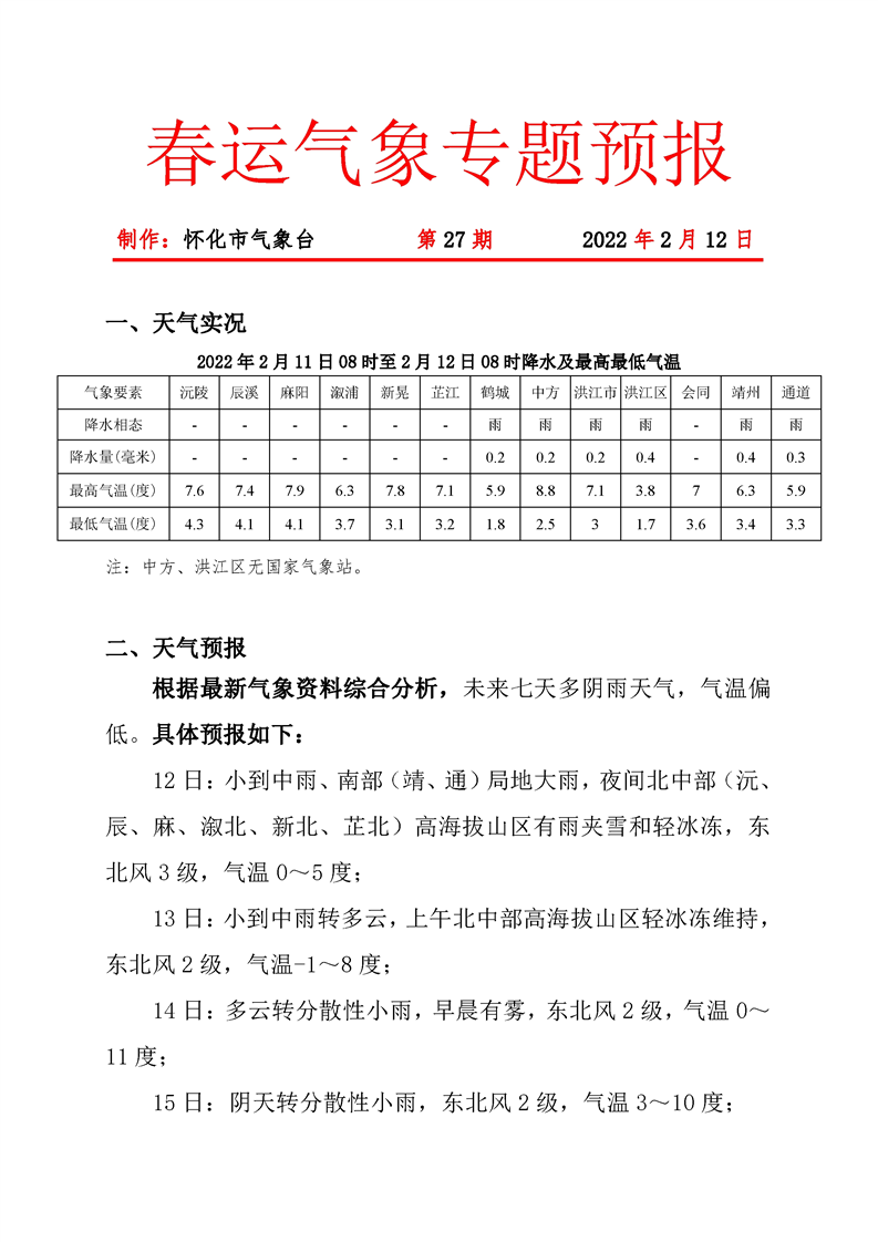 春運(yùn)氣象專題預(yù)報(bào) 第27期