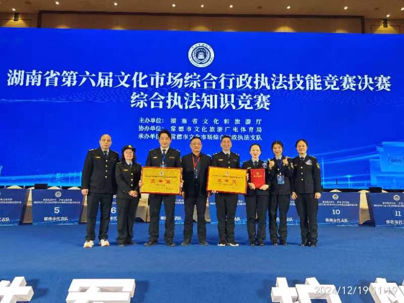 ????12月19日,湖南省第六屆文化市場(chǎng)綜合行政執(zhí)法技能競(jìng)賽決賽在常德圓滿落幕。本次比賽為期三天,設(shè)置體能測(cè)試、政策法規(guī)知識(shí)、執(zhí)法文書(shū)制作及案卷歸檔、案卷糾錯(cuò)、平臺(tái)應(yīng)用及網(wǎng)絡(luò)案件證據(jù)固定、綜合執(zhí)法知識(shí)等6個(gè)科目。懷化市采用新老結(jié)合組隊(duì),全力以赴迎戰(zhàn),經(jīng)過(guò)激烈角逐,取得多項(xiàng)榮譽(yù):獲團(tuán)體單項(xiàng)案卷糾錯(cuò)三等獎(jiǎng)、平臺(tái)應(yīng)用及網(wǎng)絡(luò)案件證據(jù)固定三等獎(jiǎng),沅陵縣文旅廣體局郭麗娟獲政策法規(guī)知識(shí)個(gè)人二等獎(jiǎng)。