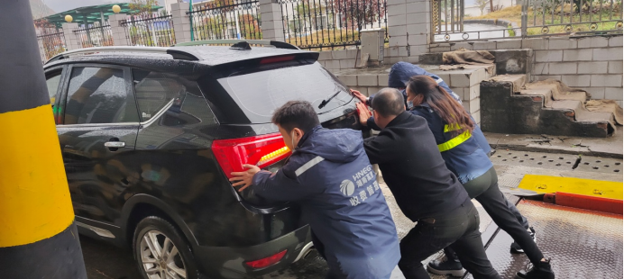 中午時(shí)分,在興隆收費(fèi)站,一輛黑色小車(chē)正常繳費(fèi)后突發(fā)故障,多次打火后仍無(wú)法啟動(dòng)。收費(fèi)站工作人員幫助司機(jī)將車(chē)推至安全區(qū)域,并幫司機(jī)聯(lián)系了附近的汽修廠。對(duì)收費(fèi)站工作人員的熱心幫助,司機(jī)連連表示感謝。