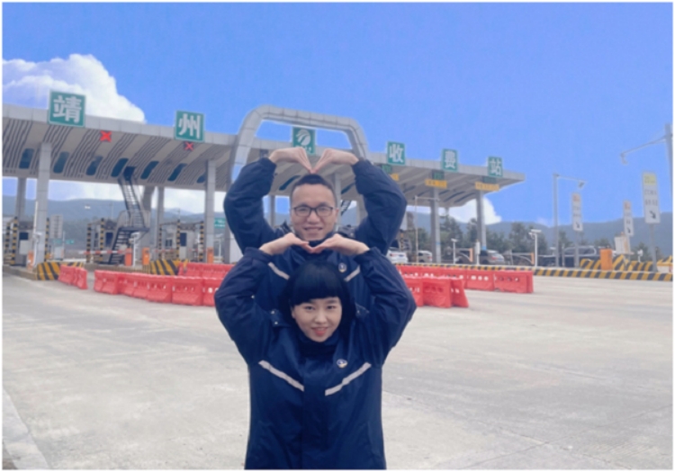 吳禮洲、楊麗香夫婦同是會同中心大站的員工,夫妻倆在高速一線為過往司乘貼心服務(wù),至今已有9年。因為工作需要和輪班安排,他們又一次在崗位上過除夕。像所有美麗動人的愛情故事一樣,吳禮洲和楊麗香相識相戀于高速公路一線收費(fèi)站,工作中共同進(jìn)步,生活上相互扶持,他們既是夫妻,又是同事,在不一樣的角色里詮釋著同樣的堅守、同樣的精彩。