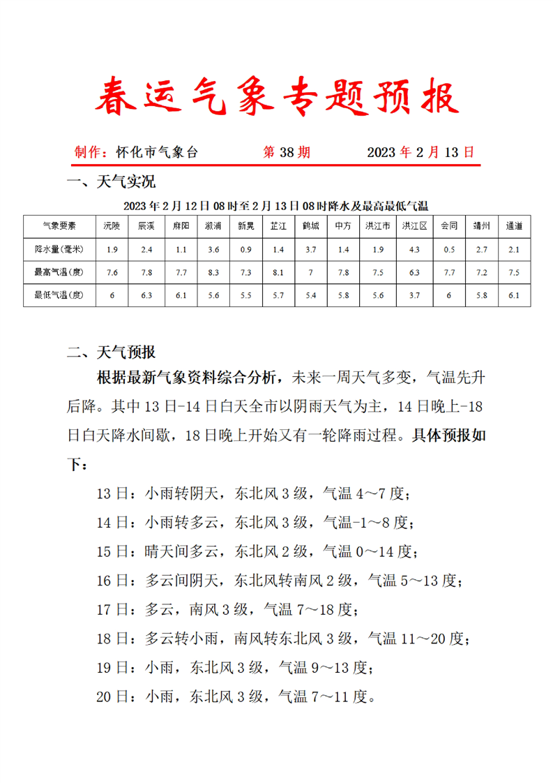春運氣象專題預報 第38期