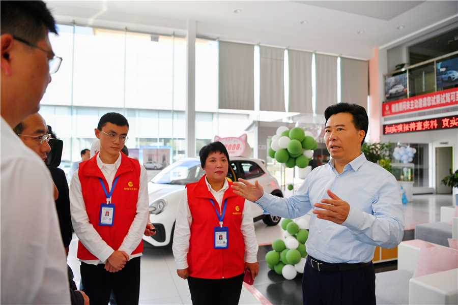 10月16日,市委副書記、市長黎春秋調(diào)研第五次全國經(jīng)濟(jì)普查工作開展情況。圖為黎春秋在鶴城區(qū)城南街道奧林社區(qū)002普查小區(qū)懷化瑞宏汽車銷售服務(wù)有限公司調(diào)研“五經(jīng)普”開展情況。(懷化日報全媒體記者 張卓 攝)