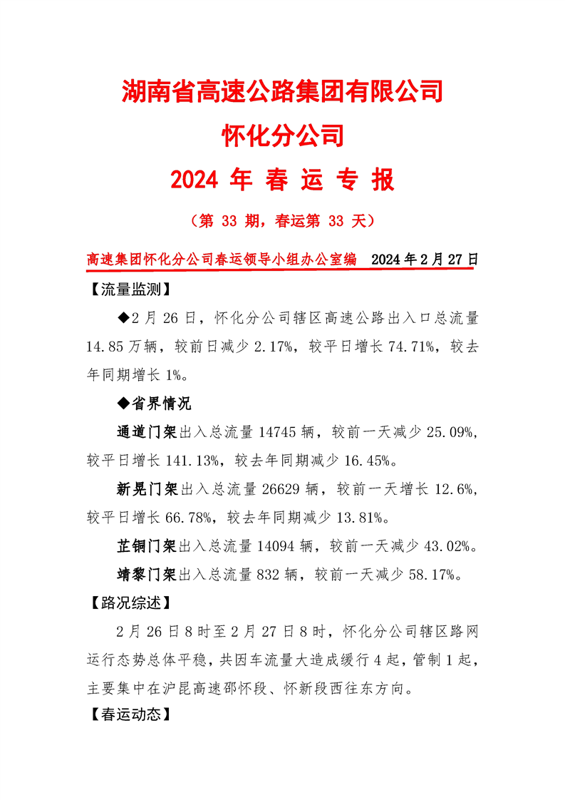 2024年懷化分公司春運(yùn)專報(bào)-第33期