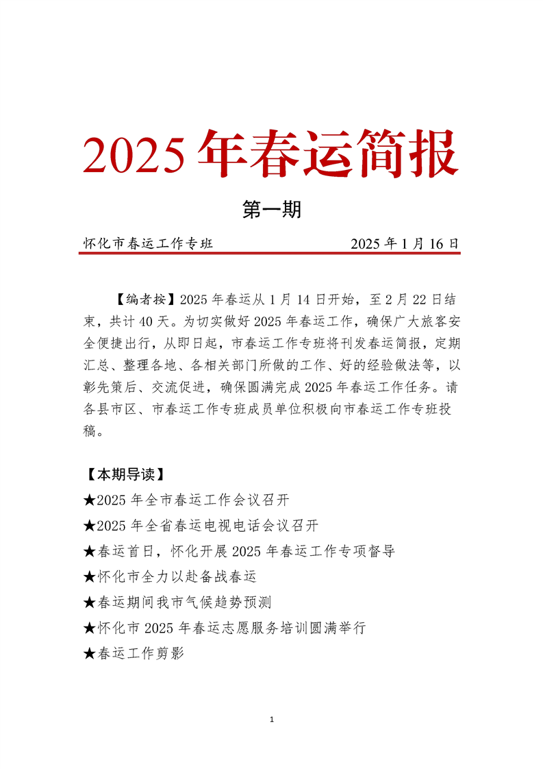 2025年春運(yùn)簡(jiǎn)報(bào)第一期