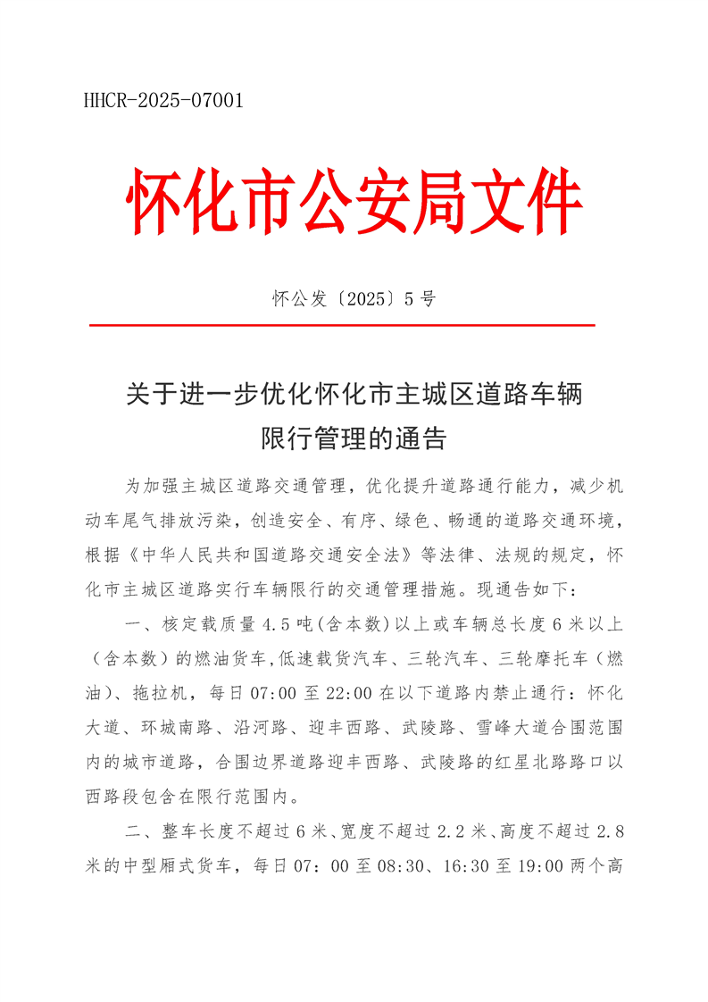 關(guān)于進(jìn)一步優(yōu)化懷化市主城區(qū)道路車(chē)輛限行管理的通告