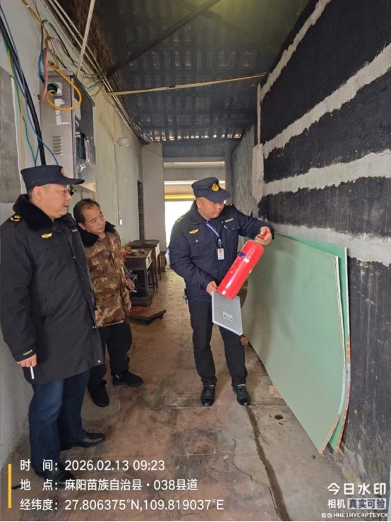 2月13日,麻陽(yáng)蘭村鄉(xiāng)應(yīng)急人員開展節(jié)前安全隱患排查。