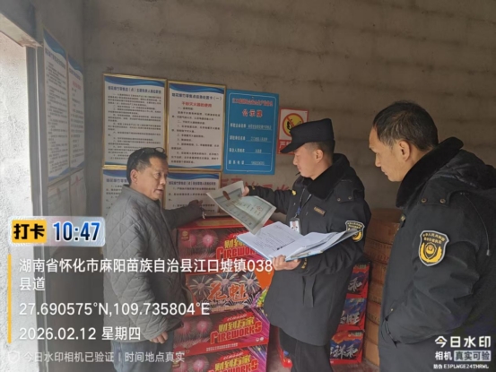 2月12日,麻陽(yáng)江口墟鎮(zhèn)綜合執(zhí)法大隊(duì)一行到轄區(qū)商鋪、煙花爆竹零售店開展歲末年初煙花爆竹安全生產(chǎn)檢查。