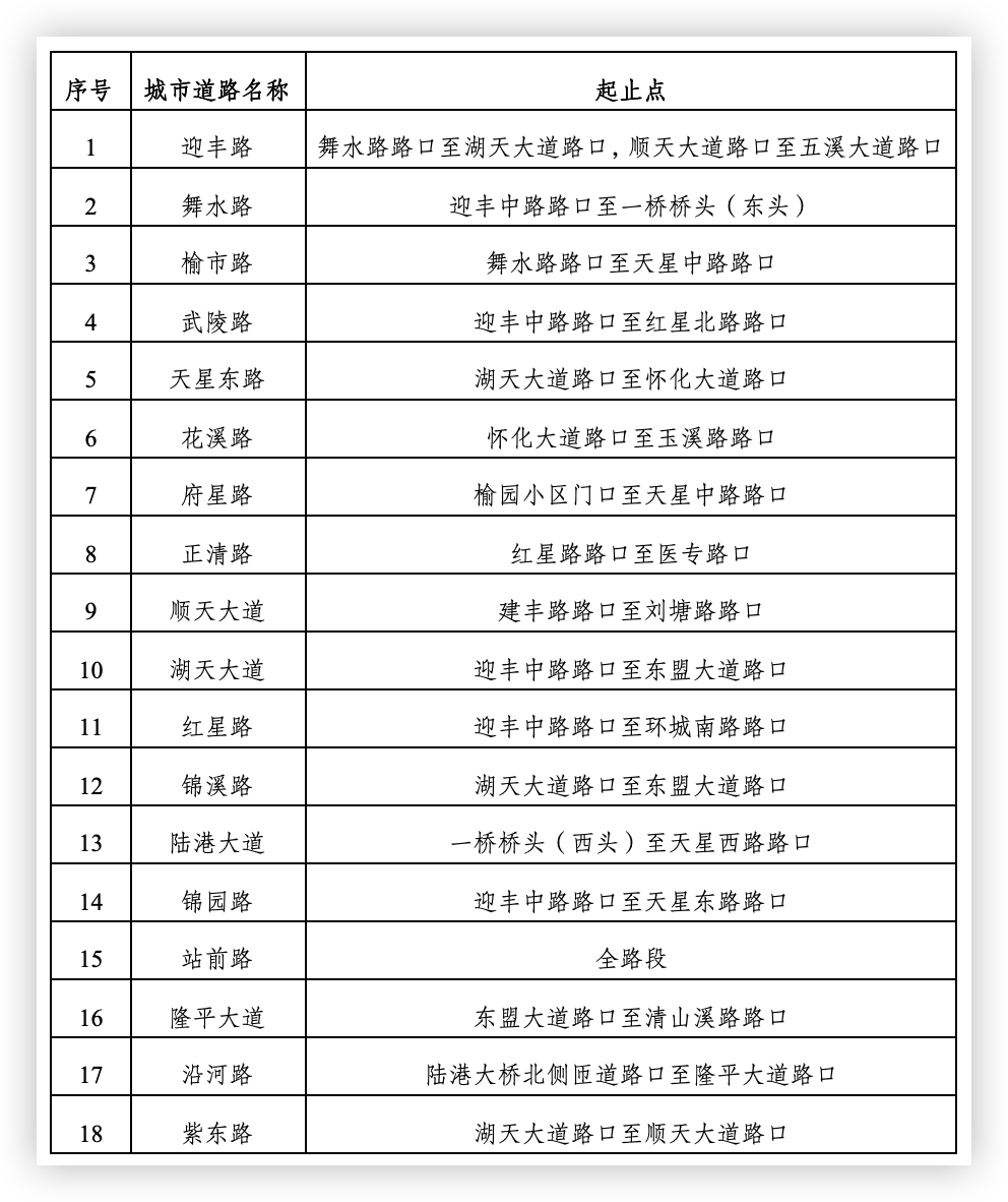 根據(jù)懷化城區(qū)機(jī)動(dòng)車(chē)違法停車(chē)管理工作實(shí)際情況,現(xiàn)將天星西路、鐵北南路機(jī)動(dòng)車(chē)違法停車(chē)行為嚴(yán)格管理路段調(diào)整為非嚴(yán)格管理路段,增設(shè)隆平大道、沿河路、紫東路為機(jī)動(dòng)車(chē)違法停車(chē)行為嚴(yán)格管理路段,迎豐路、順天大道部分路段做優(yōu)化調(diào)整。城區(qū)調(diào)整后的嚴(yán)格管理路段如下: