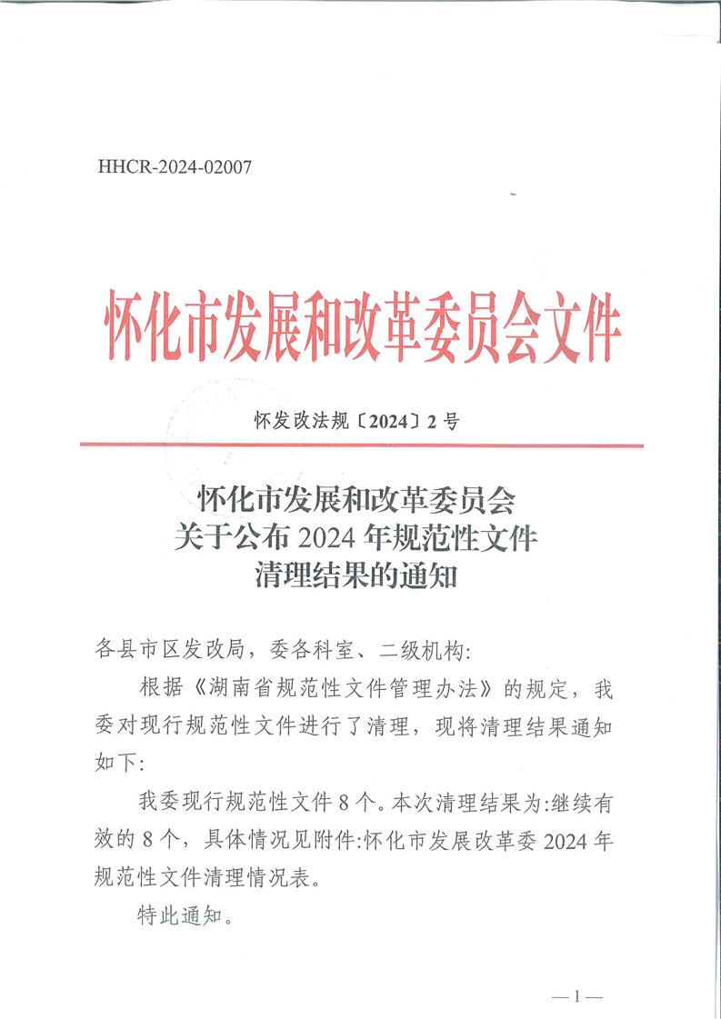 懷化市發(fā)展和改革委員會關(guān)于公布2024年規(guī)范性文件清理結(jié)果的通知