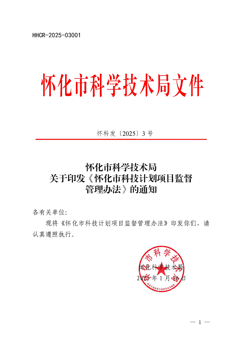 索引號(hào):431200/2025-006706 文號(hào):懷科發(fā)〔2025〕3號(hào) 統(tǒng)一登記號(hào):HHCR-2025-03001