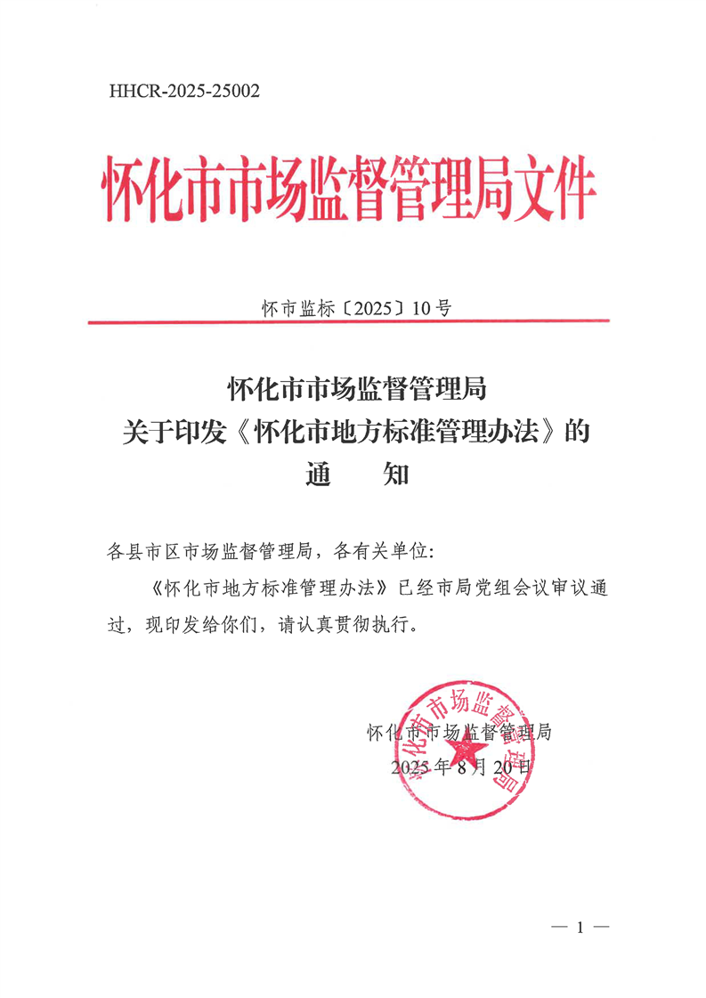 文號:懷市監(jiān)標(biāo)〔2025〕10號