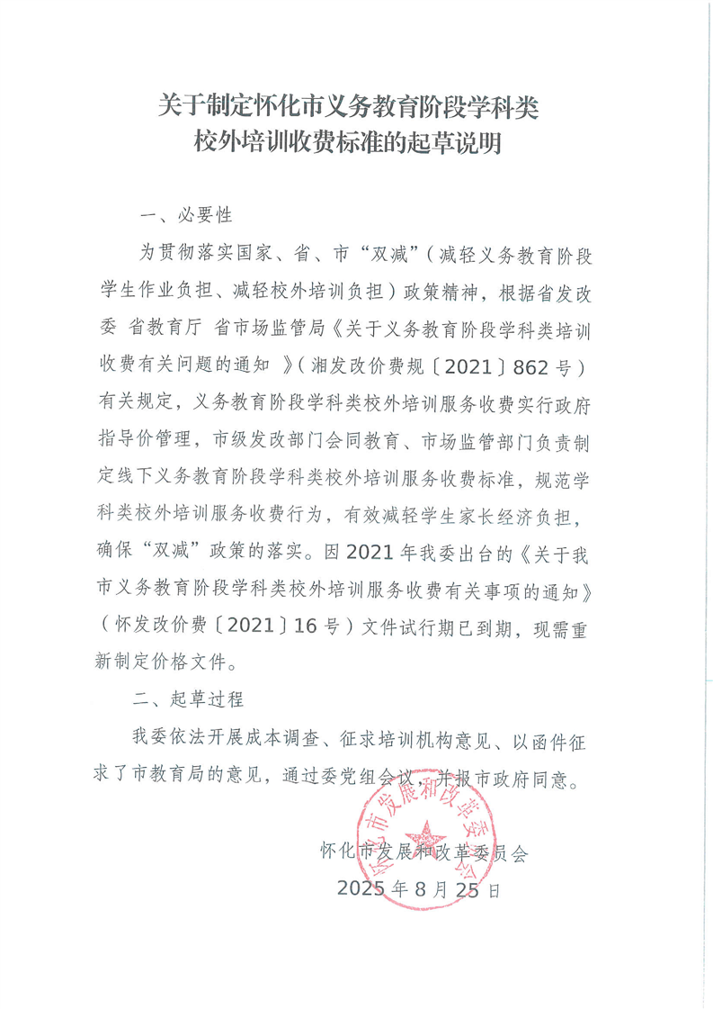 懷化市發(fā)展和改革委員會解讀《關(guān)于懷化市義務(wù)教育階段學(xué)科類校外培訓(xùn)收費(fèi)有關(guān)問題的通知》