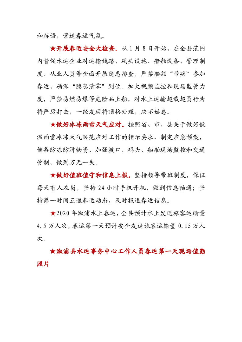 溆浦縣水運(yùn)事務(wù)中心春運(yùn)簡報第一期