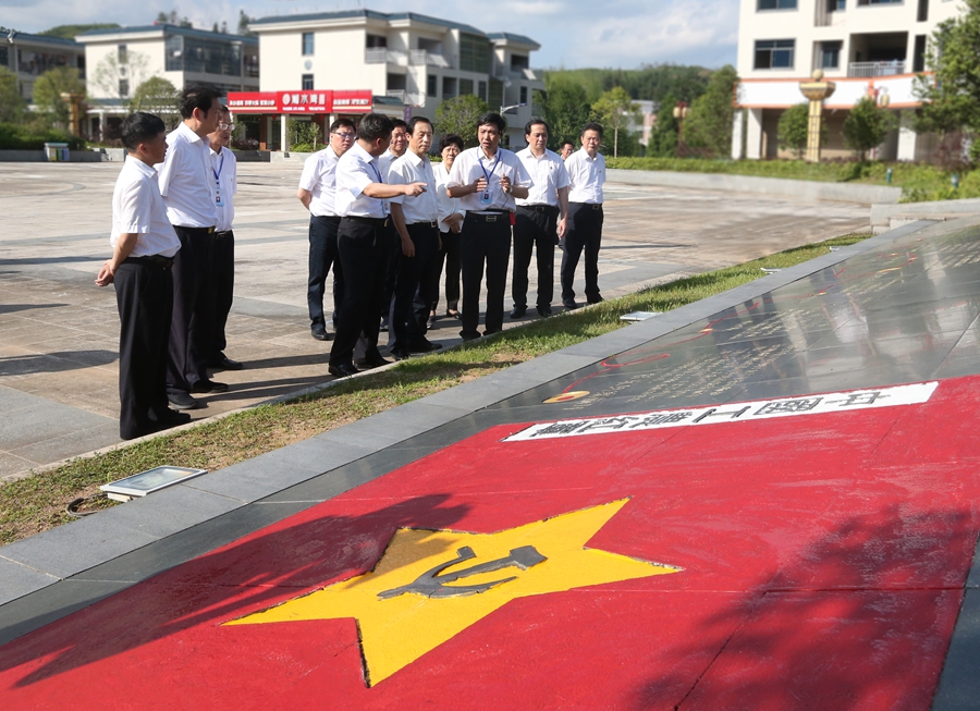 來到寨前鎮(zhèn),許達哲一行到紅六軍團西征誓師地,瞻仰了誓師紀念廣場等。許達哲指出,紅六軍團突圍西征,為中央紅軍長征起到了偵察、探路的先遣隊作用。我們要充分發(fā)揚這種探索開拓精神,甘當偉大事業(yè)的“馬前卒”、爭做開拓進取的“急先鋒”。