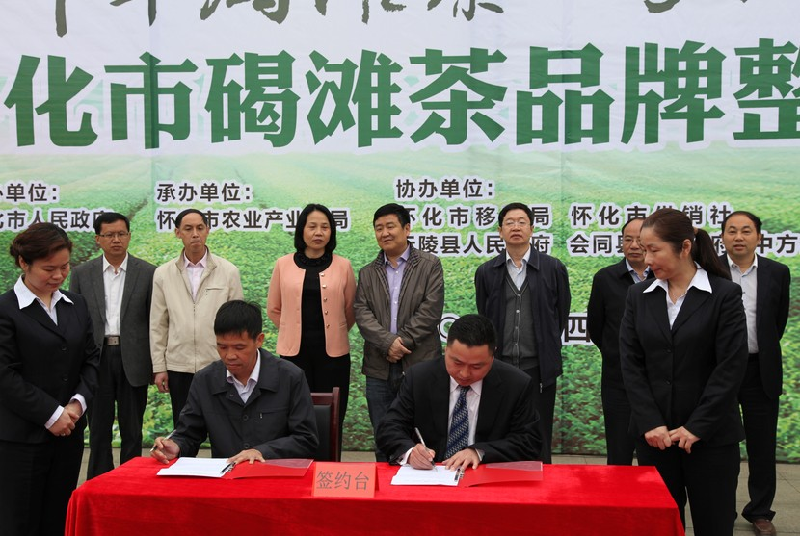 為展示懷化茶成果、打造茶品牌,推動懷化茶產業(yè)快速健康發(fā)展。4月20日上午, “千年碣灘茶.萬人共品茗”懷化市碣灘茶品牌整合推介會在市委門口佳惠廣場隆重舉行。市委常委、市委秘書長謝宏有,市人大常委會副主任蔣丙生、副市長王行水、市政協(xié)副主席向建平、市政府副秘書長董偉等領導出席推介會,市委辦、市人大辦、市政府辦、市政協(xié)辦、市發(fā)改委、市農辦、市經信委、市農業(yè)產業(yè)化局、沅陵縣人民政府、會同縣人民政府、中方縣人民政府等主要負責人參加會議。