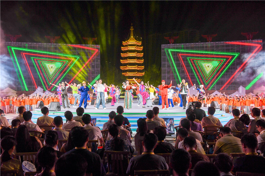 (9月17日晚,“樂動五溪 歌行千年”村歌聯(lián)唱在鶴城區(qū)鶴鳴洲舉行。)