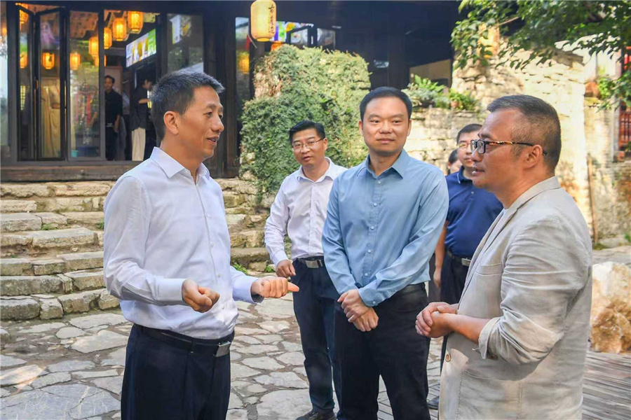 (9月28日上午,市委書記許忠建專題調(diào)研國慶、中秋假期旅游市場服務(wù)保障準(zhǔn)備工作。圖為許忠建在荊坪古村與經(jīng)營業(yè)主交流,聽取意見建議。懷化日報全媒體記者 楊智偉 攝)