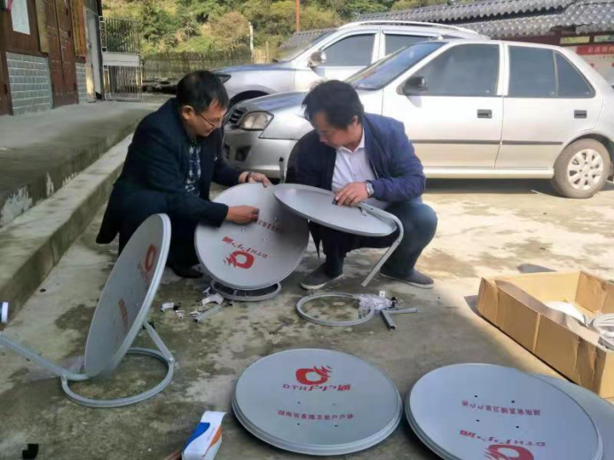 2019年11月4日通道縣電視臺(tái)陸友明臺(tái)長(zhǎng)帶領(lǐng)技術(shù)人員上門安裝戶戶通。