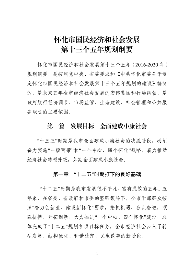 懷化市“十三五”規(guī)劃綱要