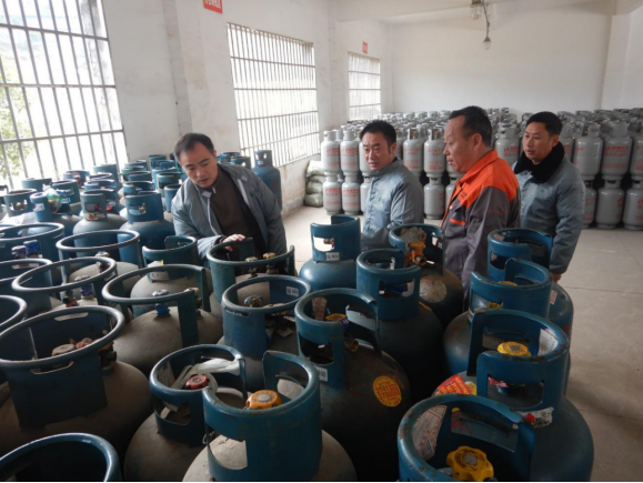 在溆浦中民燃?xì)庥邢薰?,督查組檢查了企業(yè)特種設(shè)備安全管理情況,特別是汽車(chē)罐車(chē)卸車(chē)記錄、液化石油氣分析化驗(yàn)報(bào)告、產(chǎn)品質(zhì)量監(jiān)督抽查結(jié)果通知書(shū)等臺(tái)賬資料以及設(shè)備檢驗(yàn)、人員持證、應(yīng)急管理和“日管控、周排查、月調(diào)度”工作落實(shí)情況,要求企業(yè)落實(shí)安全主體責(zé)任,學(xué)習(xí)相關(guān)法律法規(guī),完善溯源臺(tái)賬,并針對(duì)檢查發(fā)現(xiàn)充裝站內(nèi)報(bào)廢瓶區(qū)域存有部分待報(bào)廢氣瓶的情況,現(xiàn)場(chǎng)要求企業(yè)立即將待報(bào)廢氣瓶送至檢驗(yàn)檢測(cè)機(jī)構(gòu),實(shí)施報(bào)廢處理。