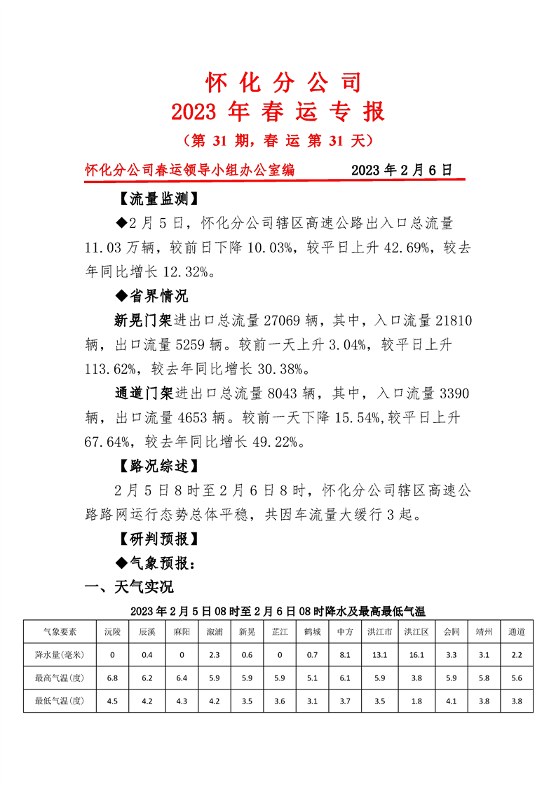 2023年懷化分公司春運專報-第31期