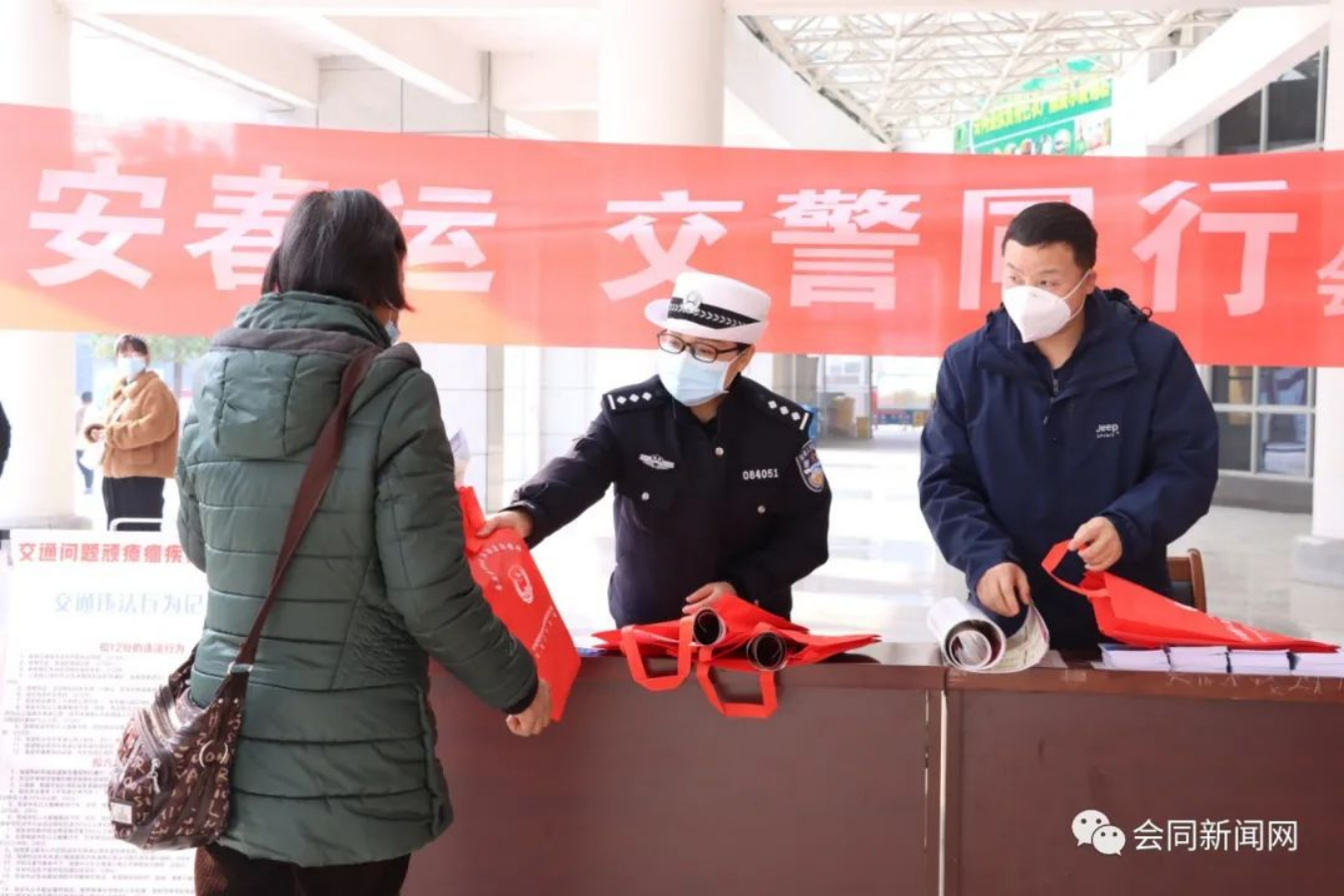 工作人員與志愿者在車站入站口搭建服務(wù)臺,開展交通安全科普宣傳,并針對不同旅客需求,提供問詢指導(dǎo)、安檢協(xié)助、行李幫提等服務(wù),還為廣大旅客送上年畫、口罩、手提袋等物品,用一顆公益心溫暖旅客回家路。志愿者們忙碌的身影穿梭在車站內(nèi)外,形成了一道亮麗的風(fēng)景。