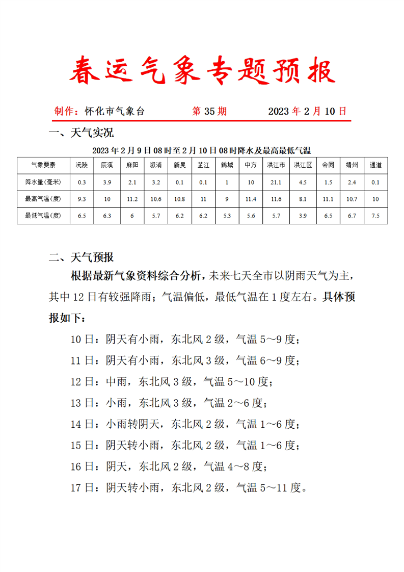 春運氣象專題預(yù)報 第35期