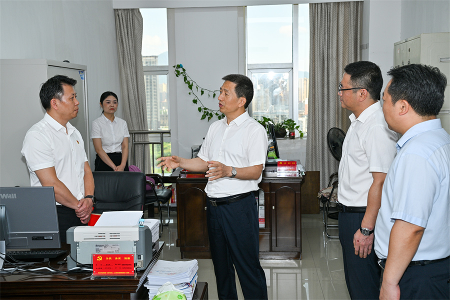 圖為許忠建在市科技局調(diào)研。(以上照片均由懷化日?qǐng)?bào)全媒體記者 潘雨 攝)