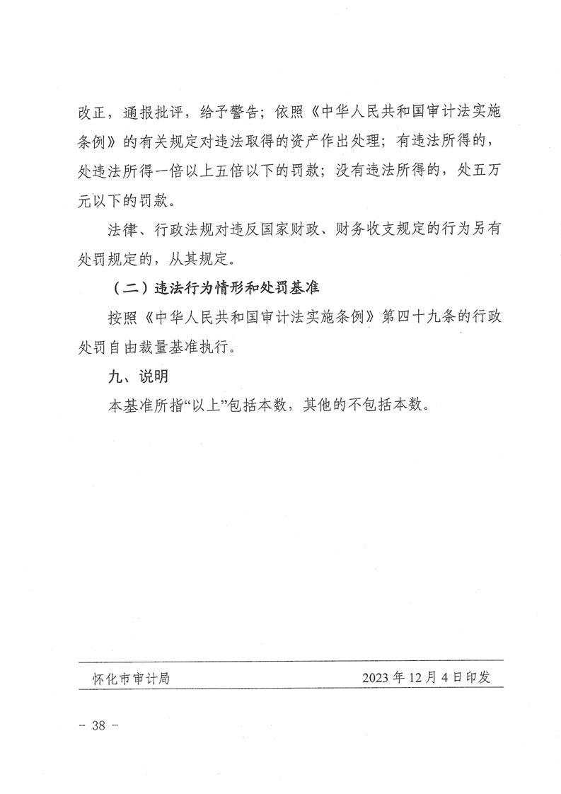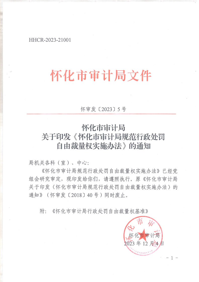 懷化市審計(jì)局關(guān)于印發(fā)《懷化市審計(jì)局規(guī)范行政處罰自由裁量權(quán)實(shí)施辦法》的通知